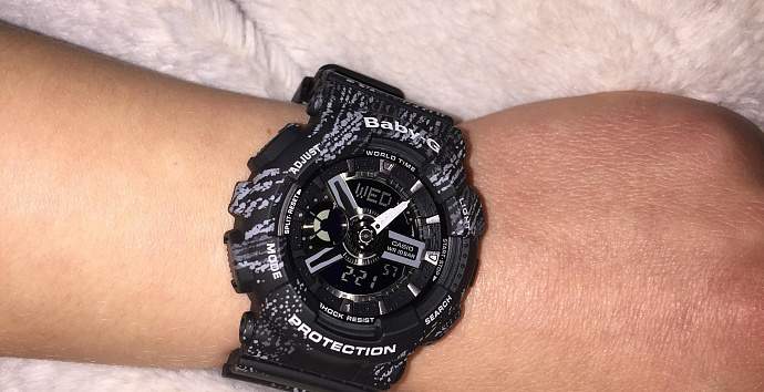 Baby-G Punching Pattern Series серия часов данных моделей акцентирует внимание на стильный дизайн "ОН и "ОНА" часы для пар. Дизайн основан на текстурной концепции используемой для кроссовок и других предметов. Идеальная серия для спортивных пар. Ударопрочные. Ударопрочная конструкция защищает от ударов и вибрации.Светодиодная подсветка. Для освещения циферблата используется светодиод.Необрит Специальное покрытие обеспечивает длительное послесвечение в темноте даже после кратковременного нахождения на свету.Мировое время Обеспечивает отображение текущего времени в некоторых городах и определенных регионах мира.Формат времени 12/24 Время может отображаться как в 12-часовом, так и в 24-часовом формате.Секундомер (1/100 сек. макс. 24 час.) Точное измерение истекшего времени касанием кнопки. Дробь соответствует величине, с точностью до которой производится измерение, а число часов - максимально измеряемому времени.Сплит-таймер Таймер обратного отсчета (1 мин. макс. 24 час.) Секундомер, работающий в обратном направлении: при окончании отсчета (0 минут, 0 секунд) издается 10 секундный сигнал. Цифры указывают интервал и максимальное время для установок обратного отсчета.Включение/выключение звука кнопок При желании звук кнопок при переходе из одного режима в другой может быть выключен. При этом звук будильника и таймера обратного отсчета будет работать независимо от этого.Ежедневный сигнал, ежечасный сигнал (5) Ежедневный сигнал звучит каждый день в установленное вами время. Число показывает, сколько ежедневных сигналов имеется. Функция ежечасного сигнала обеспечивает подачу звукового сигнала при наступлении каждого нового часа.Ежечасный сигнал Подача сигнала при наступлении каждого новго часа.Будильник SNOOZE. Функция позволяет повторять сигналы будильника через определенный интервал времени. Например, Вы установили сигнал будильника на 07:00. Будильник сработал в указанное время, но Вы не проснулись. Тогда включается функция snooze и через несколько минут будильник срабатывает снова.Полностью автоматический календарь Автоматически учитываются месяцы разной продолжительности и високосные годы.