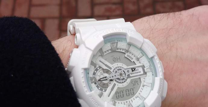 Ношу несколько месяцев, в этих часах побывали в воде, нырял в реку, купался в бассейне, они падали на бетонный пол, но им всё ни по чем. Белый цвет, конечно, маркий, но я просто ополаскиваю их водой с мылом, когда мою руки. Ходят точно и смотряться классно.