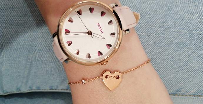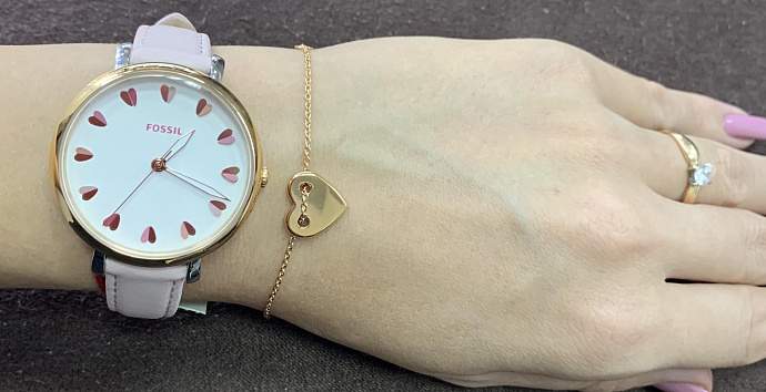 Часы шли комплектом с браслетом, такой приятный бонус. Циферблат украшен сердечками вместо цифр, очень оригинально.