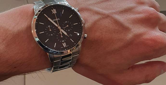 Кварцевые Мужские Наручные часы Fossil FS5384 с хронографом из коллекции Neutra Chronograph Stainless Steel Watch.