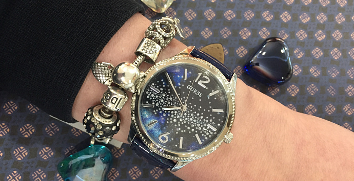 Корпус из нержавеющей стали. На синем циферблате россыпь кристаллов создает впечатление небосвода, кристаллы создают образ космического звездного пути.